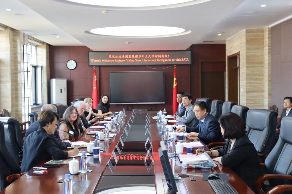 9月25日,美国塞基诺谷州立大学副校长黛博拉·亨特利女士率队到校交流访问并参加两校师生艺术作品展开幕式。党委常委、副校长孙延鹏会见了代表团成员。教务处处长范纯龙、设计艺术学院院长刘洋、外事办公室主任刘平参加了会谈。孙延鹏代表学校对黛博拉·亨特利副校长一行的到来表示热烈欢迎,并对我校近年来的发展情况进行了介绍。他指出我校与塞基诺谷州立大学有着十余年的友好合作历史,尤其在艺术专业一直保持着稳定、持续的合...