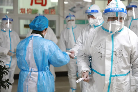 需要转运的学生穿好防护服,戴好口罩,后勤组配合组织学生有序转运
