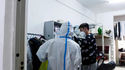 后勤组安排专业人员前往检测异常学生所在位置,接其至校内健康监测点