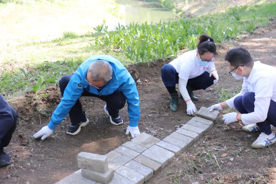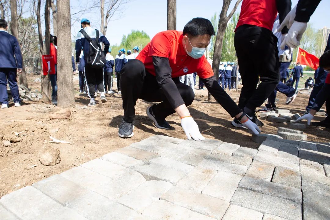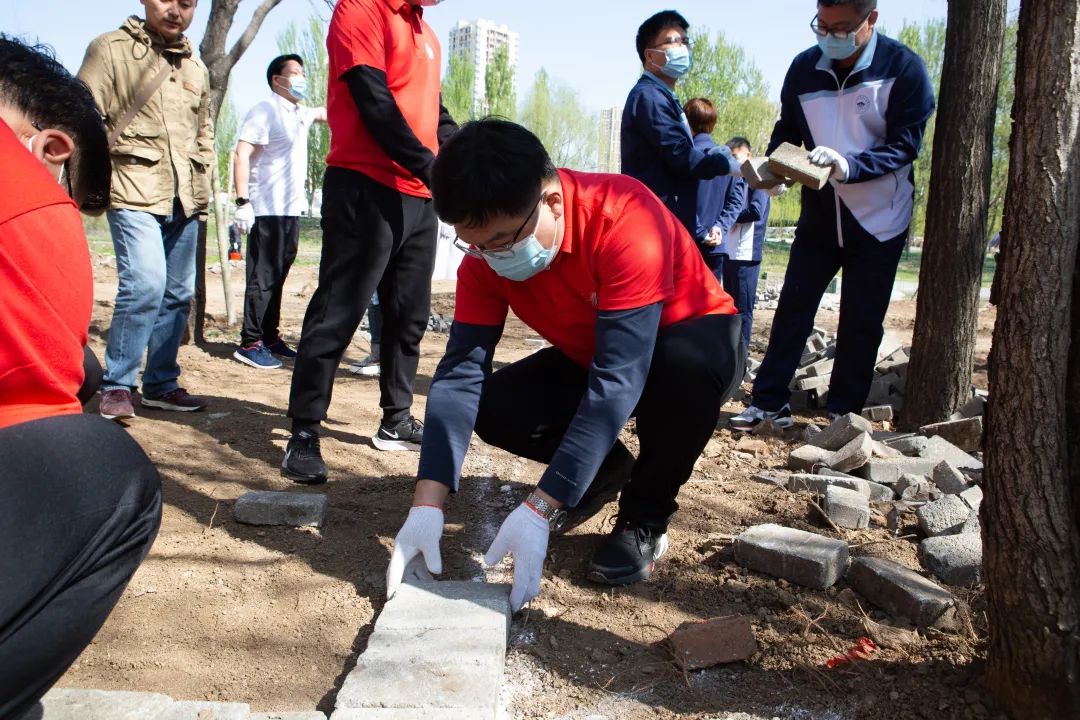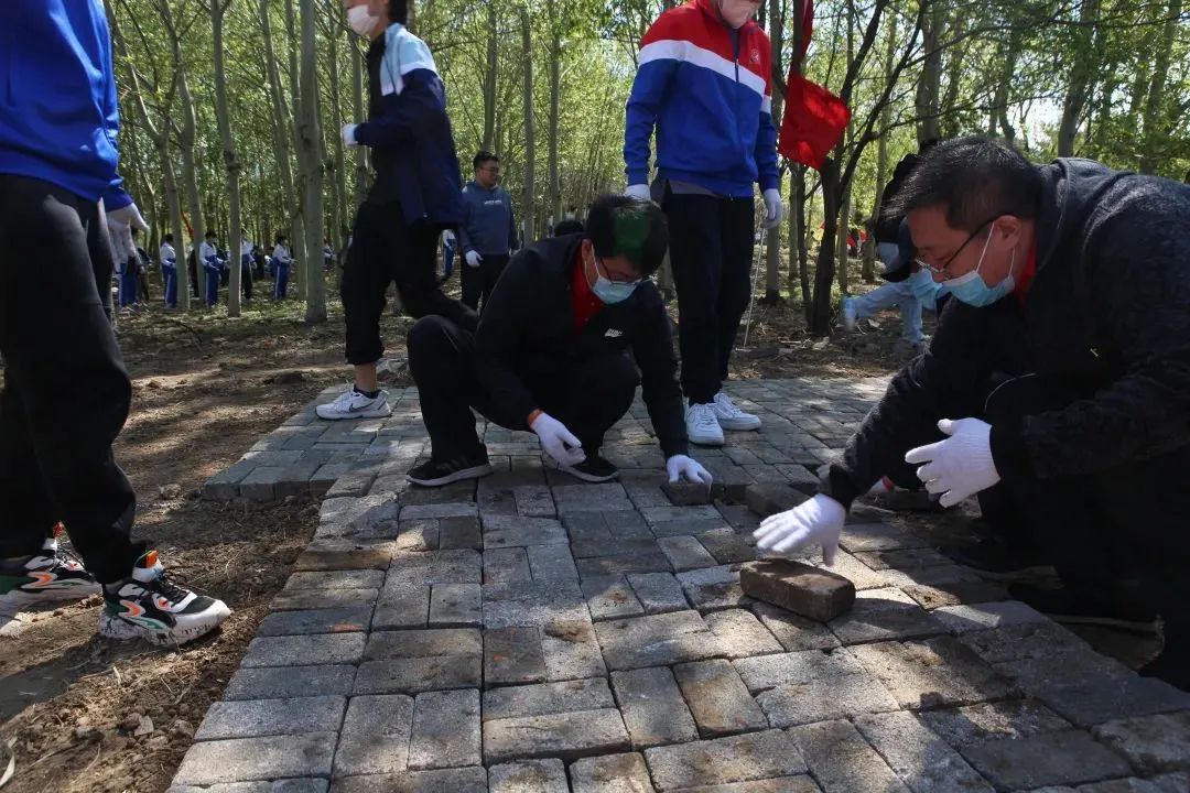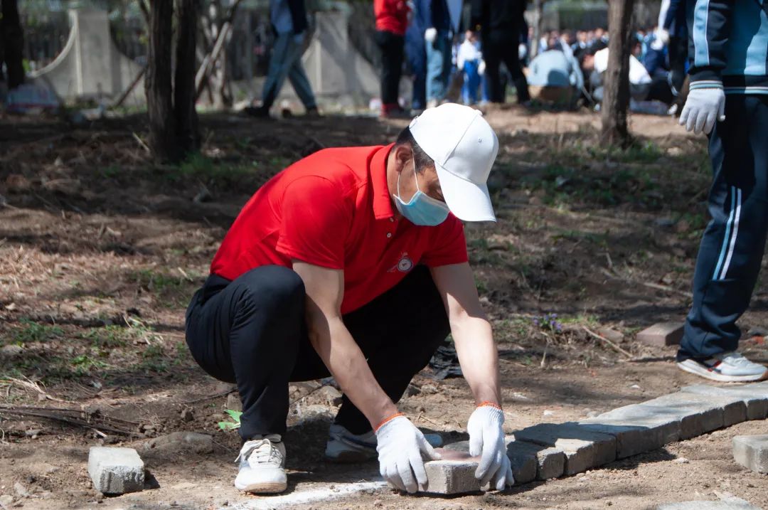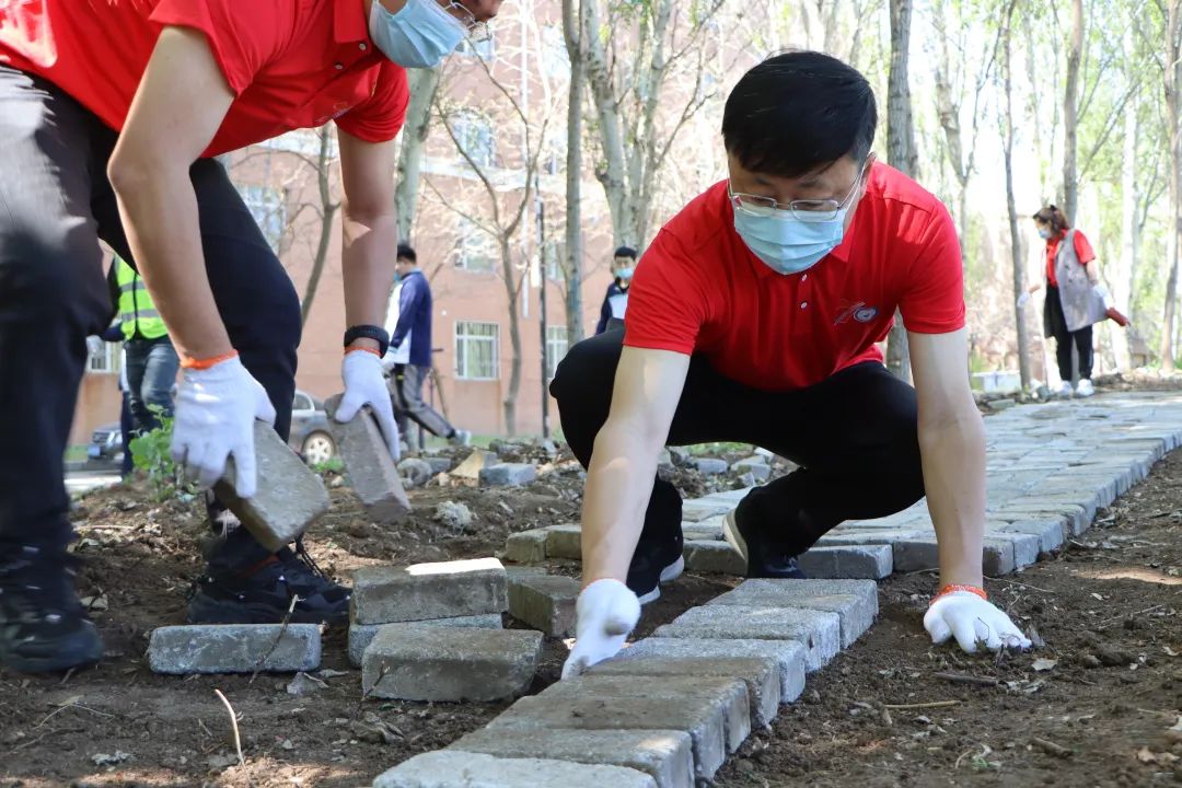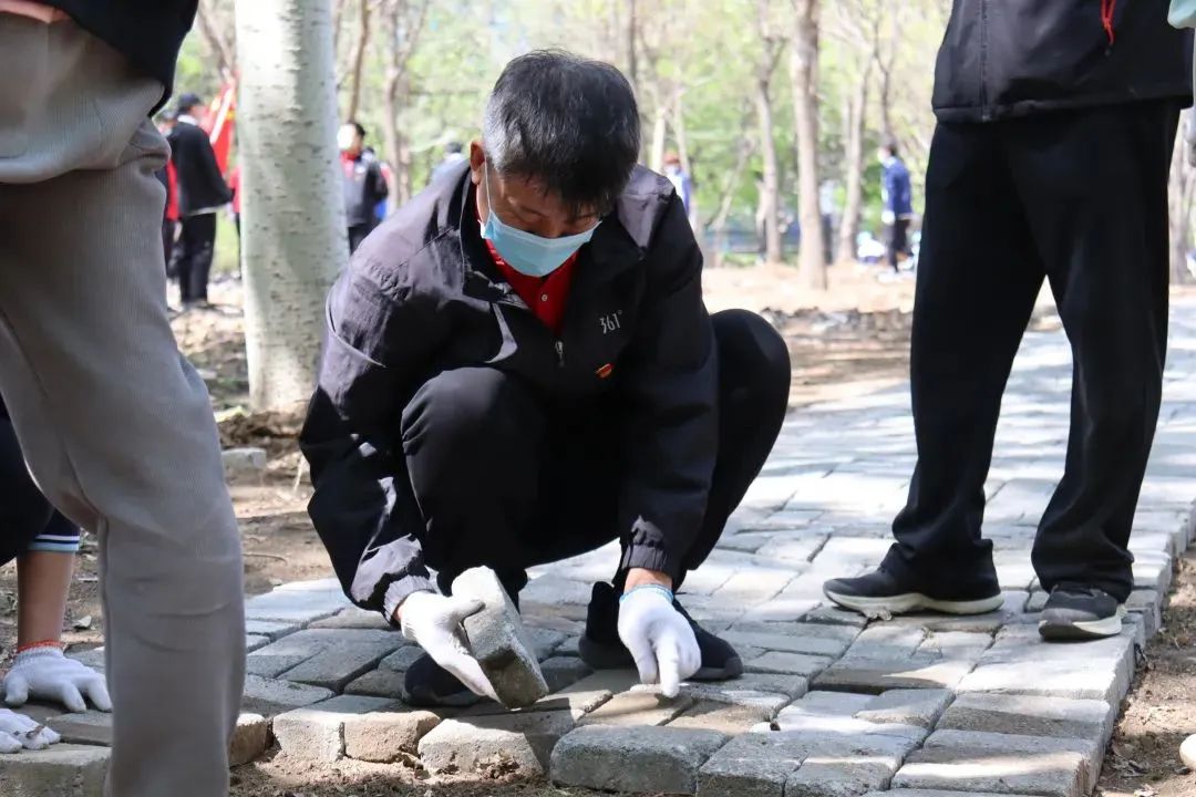 上午9时,参加劳动的全体师生在升旗广场集结完毕,随着学校党委启动命令的下达,党委书记翟文豹、校长孙小平分别带队,对正门出口北侧空地道路及校医院北侧河堤道路进行铺砖作业。同志们在指挥引导下,分散到工作区域各处,戴上手套、弯下身子,有的铺设地砖、有的平整地面、有的搬运材料,大家配合默契,动作娴熟,互帮互助,迅速投入到紧张的劳动中。春风吹拂,经过上午的辛勤劳动,铺砖工程很快有了成效,同志们用挥洒的汗水绘成了一幅光荣的劳动画卷,在新铺设道路的映衬下,周边环境显得更加整洁美观。