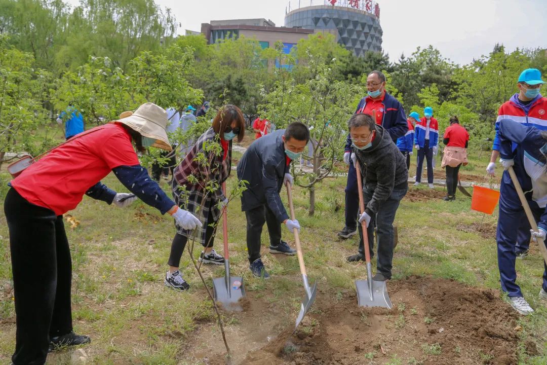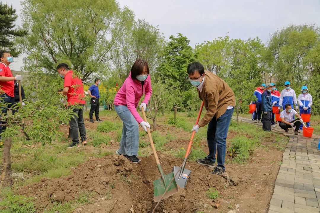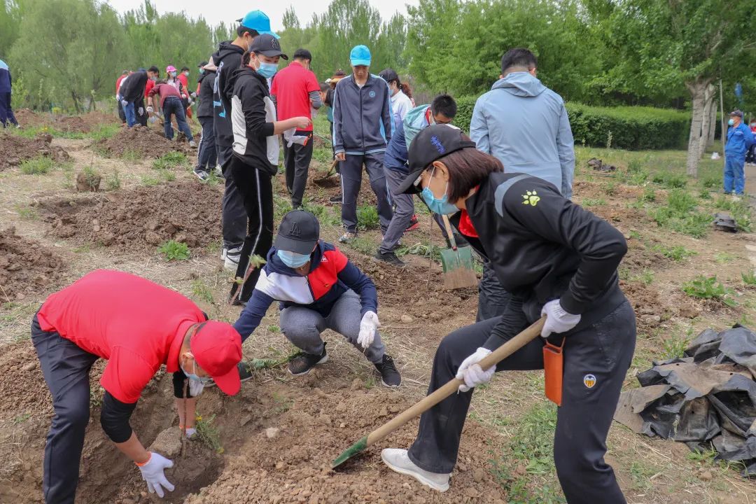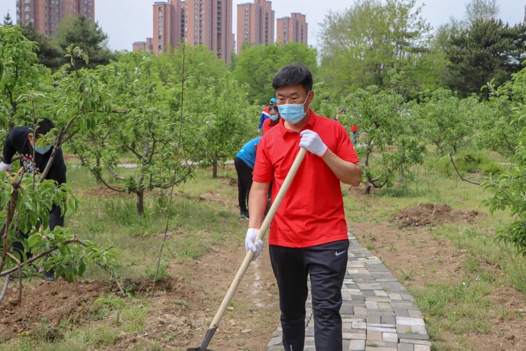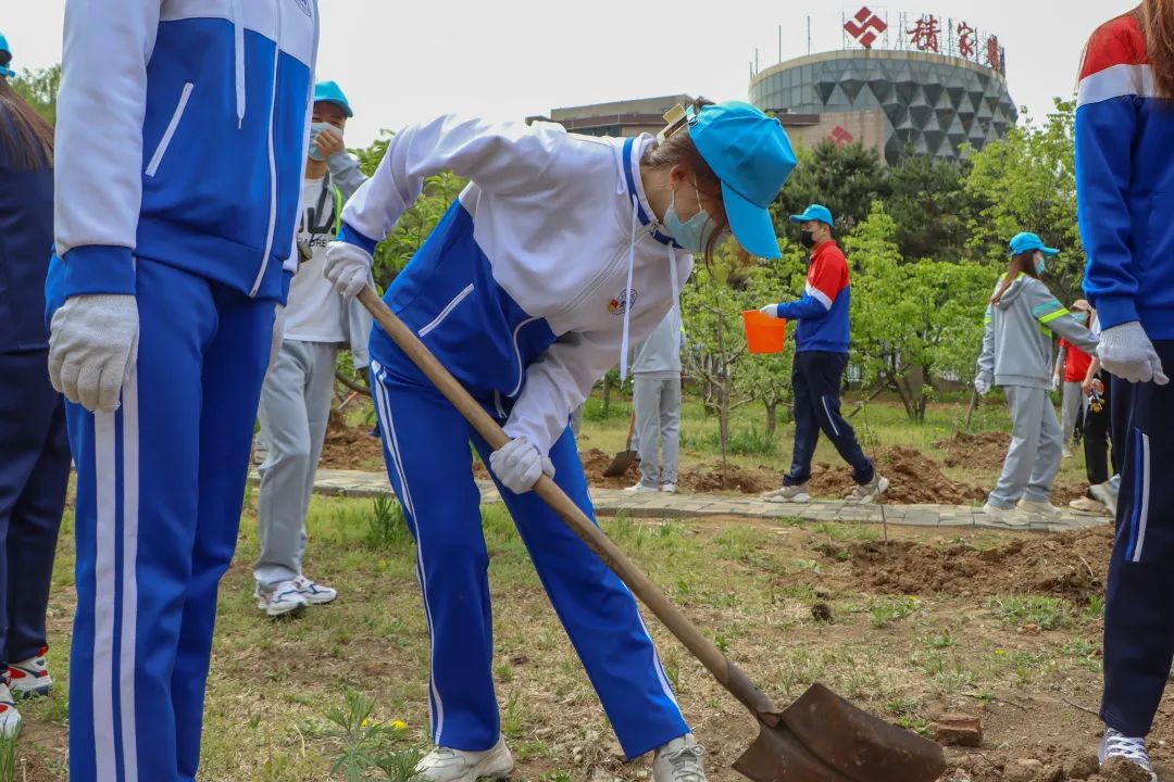 植树活动现场气氛热烈,大家三五人一小组,挥锹铲土、扶树正苗、培土踩实、引水浇灌,所有人默契配合,干劲十足,到处是忙碌的身影,呈现出一派热火朝天的劳动景象。经过大家的努力,四片区域共栽植桃树、苹果树、李树等1000余株,一株株茁壮的树苗稳稳地扎根在沈航的土壤中,为校园增添了一片片温馨绿意的同时,以实际行动践行“绿水青山就是金山银山”的发展理念。