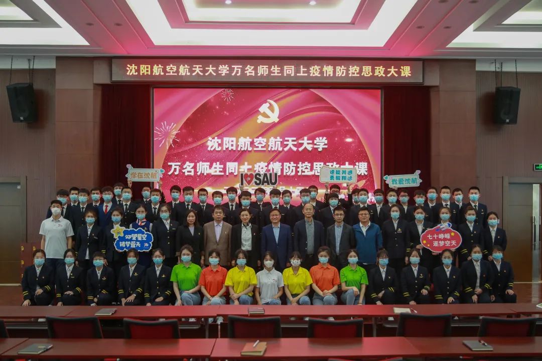 “把爱连起来,把心连起来”,课间,线下课堂的同学们用一曲《与你同在》,燃起青春志愿之火,唱出了携手战胜疫情的坚定信心。“严防死守,铸盾有我;担当作为,冲锋有我;决战决胜,坚守有我”,同学们铿锵有力的誓言,道出了沈航学子的青春担当。
