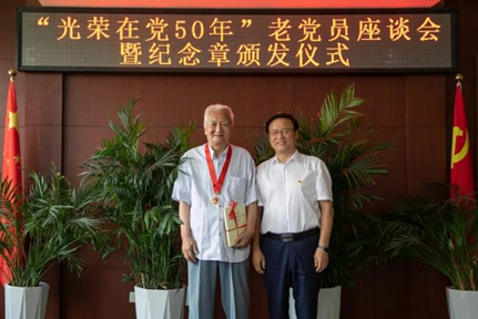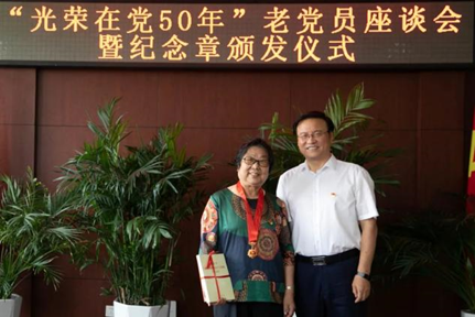党委常委、党委组织部部长徐宝贵,党委常委、党委宣传部统战部部长周驰,党政办公室主任姚奎栋,离退休职工工作处处长田利民以及“光荣在党50年”纪念章获得者代表参加了此次活动。