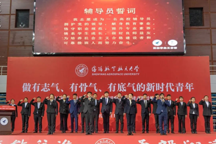 “我志愿成为一名高校辅导员,为培养社会主义合格建设者和可靠接班人而努力奋斗!”现场进行了新任辅导员集体宣誓,铮铮誓言,响彻会场,做无愧于新时代的沈航辅导员,为了学生、为了党和国家,将青春挥洒在热土之上,践行誓言,终生不变!