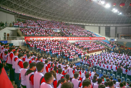 报告会在学校体育馆举行,党委副书记范振伟,党委常委、组织部部长徐宝贵,党政办公室主任姚奎栋,工会主席乔孟磊,党委学生工作部部长、学生处处长陈宝鹏,马克思主义学院党委书记吕健,马克思主义学院教授王洪飞,宣传部统战部副部长李江,人事处副处长董喆,教务处副处长江秀红,学生处副处长马宁、董一乔、彭晶,各学院党委副书记,全体辅导员,新入职教师,学生干部代表以及2022级本科生,研究生共计4000余人线下聆听了报告,8000余人通过直播收看了报告。会议由党委副书记范振伟主持。