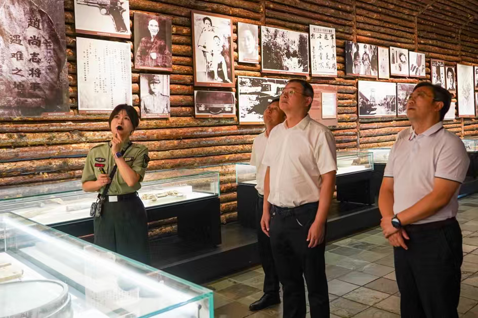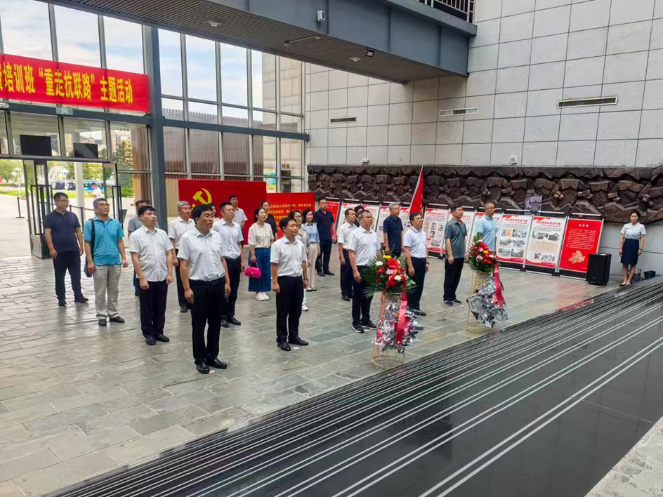 两校党外代表人士参观了东北抗联史实陈列馆,通过丰富的历史照片、珍贵的史料文物、场景复原,陈列馆系统展示了东北抗日联军14年的艰苦斗争历程,校领导和党外代表人士认真听取讲解,仔细观看史料文物,切身感受抗联将士的英雄事迹和光辉历程。在抗联史实陈列馆序厅,党外代表人士向抗联英雄群像敬献花篮,现场全体同志向烈士群像三鞠躬。