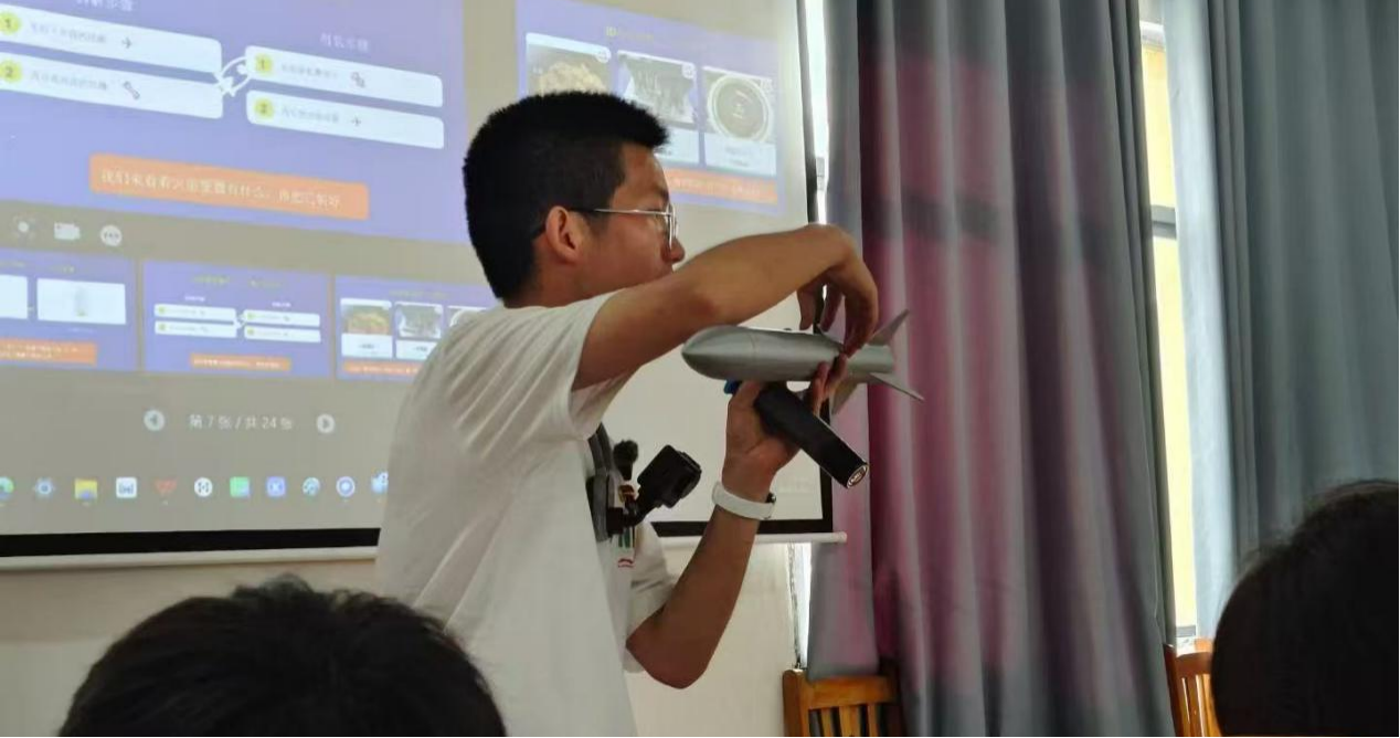 利用课余实践,张世杰还会到在乡村开展志愿服务活动,为村子里的孩子们讲航天科普课,“给乡村孩子们上了一堂航天科普课,看着他们求知的眼神,满满的成就感!希望我将自己的梦想一起传递下去,种下梦想的种子。”张世杰说道。