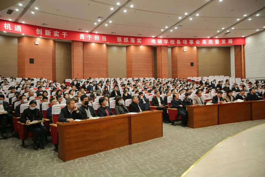 党委副书记、副校长李润东讲话重点围绕全面总结过去一年和“十四五”阶段性工作成果,认清制约学校高质量发展瓶颈问题,未来三年学校高质量发展的目标路径、工作举措及2023年重点工作等方面进行了部署与安排。他指出,2022年在全体教职工的共同努力下,学校统筹推进了疫情防控和学校发展,学校人才培养、学科建设、科学研究、师资队伍、党的建设等方面都取得了显著成绩。全校师生员工隆重庆祝建校70周年,总结了学校发展历程和办学成就,学校的影响力、凝聚力和向心力进一步增强。