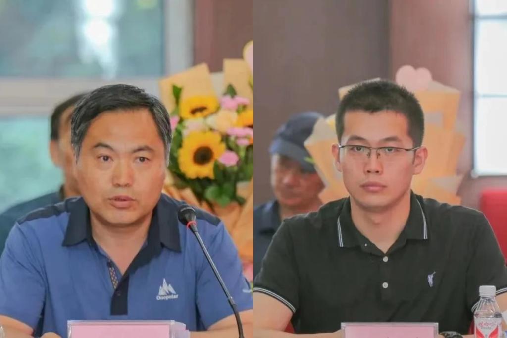 退休教职工代表潘琢金、青年教职工代表徐文峰发言