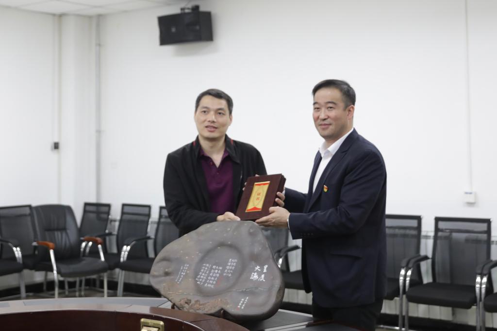 招生就业处处长、校友总会常务副会长银国涛向端砚“星辰大海”捐赠校友代表颁发捐赠证书。
