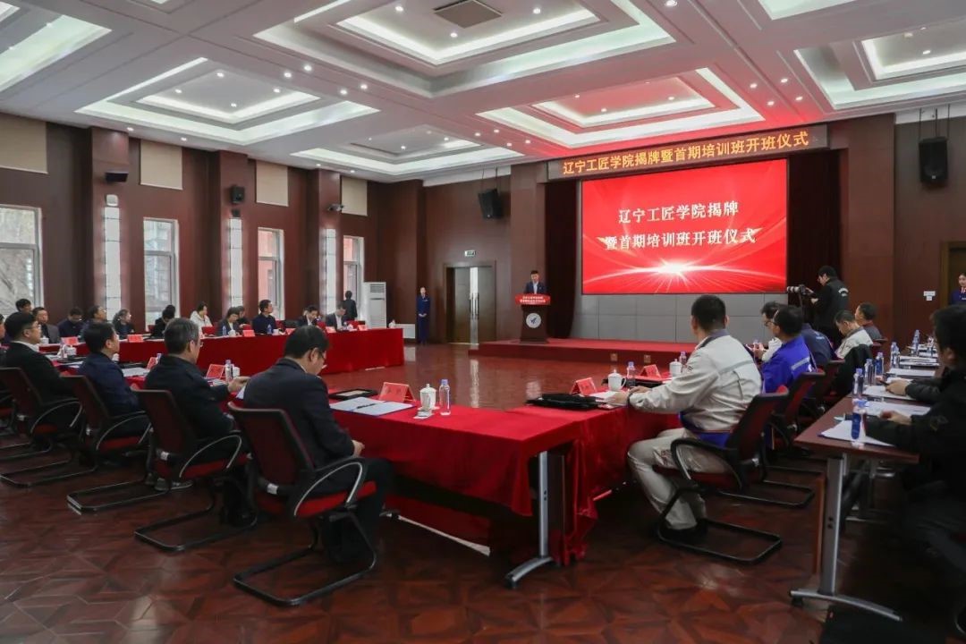 副校长林峰向与会领导、嘉宾和学员们介绍了辽宁工匠学院的建设和规划情况。一是建好建强思想政治引领、科技理论知识教育、终身职业技能培训、创新成果展示交流和应用转化“四个基地”;二是优化细化技术能手水平提升、创新团队能力上升、准工匠素质跃升三个层次,智能制造、智能控制、智能装备三个专业方向,理论学习、技能实践、创新交流三个模块相融合的培训体系;三是构建完善“思政导师+理论导师+技能导师+创新导师”的新形态”四合一“导师-学员的“一人一策”培育方案;四是搭建职工与教师之间、企业与高校之间、生产与科研之间的创新成果展示交流和应用转化平台。