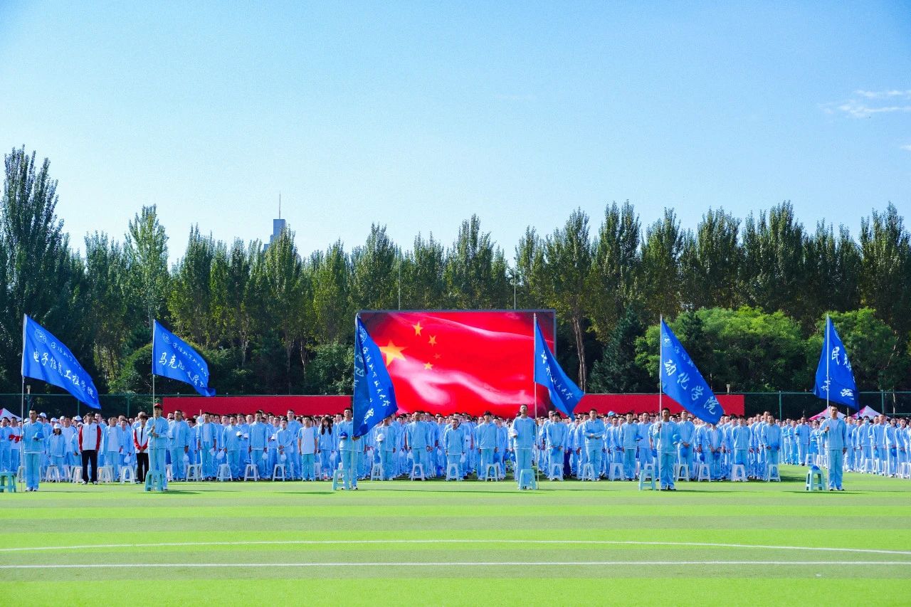 在庄严的国歌声中,开学典礼正式拉开序幕。鲜艳的五星红旗冉冉升起,全体师生面向国旗,肃立致礼,齐唱国歌,空天报国的豪情与壮志。随着国旗冉冉升起,新生们以昂扬的姿态迎接未来的挑战。