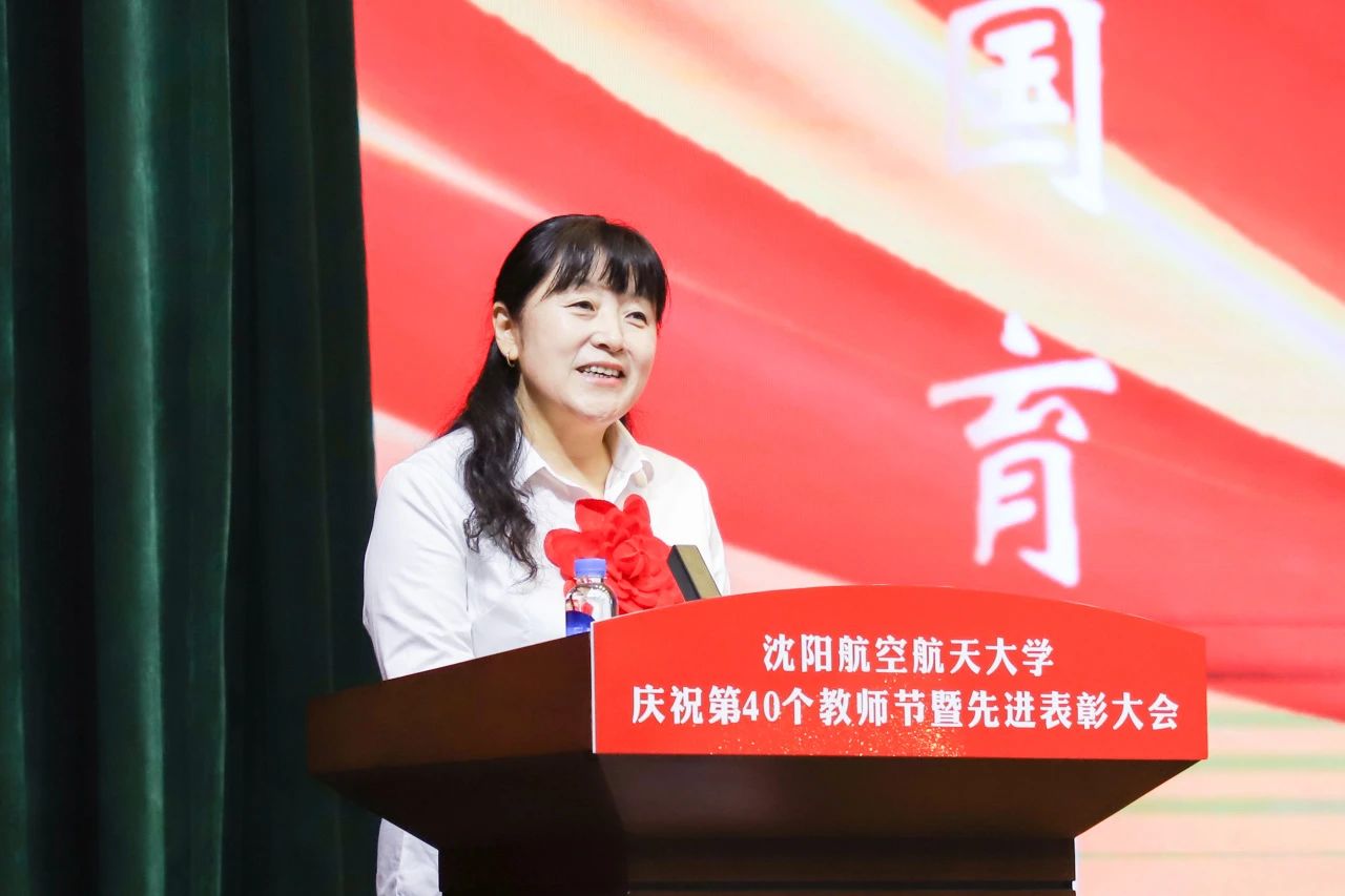 教师代表马克思主义学院赵冰梅教授在发言中回顾了个人40年的教学生涯,强调了一线教师应持之以恒地坚守教育岗位,以使命、热爱与奉献为动力,做有灵魂、有品位、有责任的教学家,做不掉队的沈航人,做眼里有光的沈航人,以满腔的热忱,坚定的信念和不懈的努力,为学生成长,为辽宁振兴发展教育强国贡献沈航人的力量。