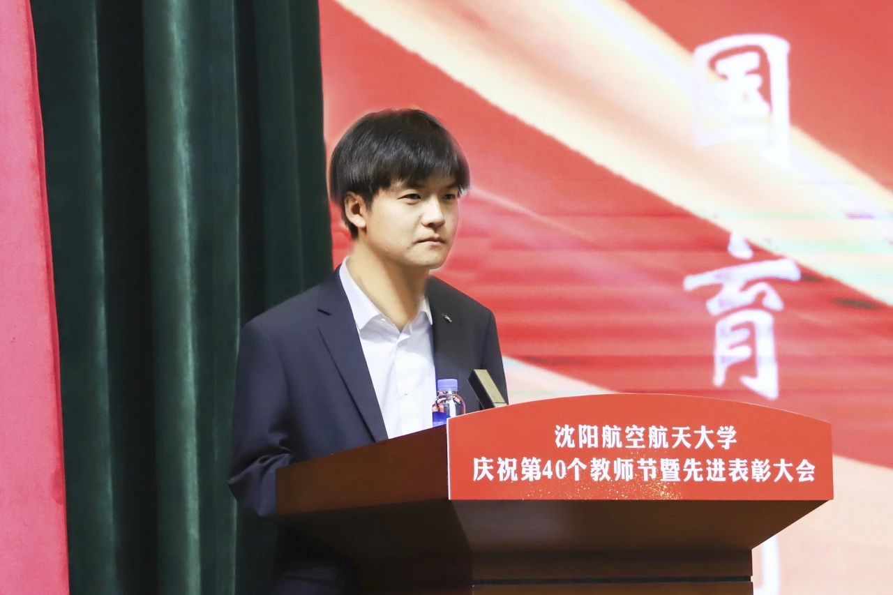 学生代表机电工程学院沈佳奥同学在发言中回忆了老师们如何用温暖的教育和亲切的话语给予他家一般的温暖,培养了他航空报国的情怀,帮助他取得优异成绩并成功创业的过程,他代表全体同学感谢老师们的辛勤付出和无私奉献,并祝愿全体老师教师节快乐。