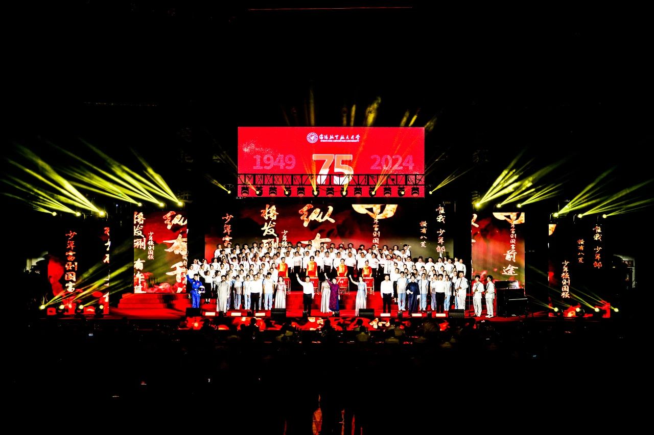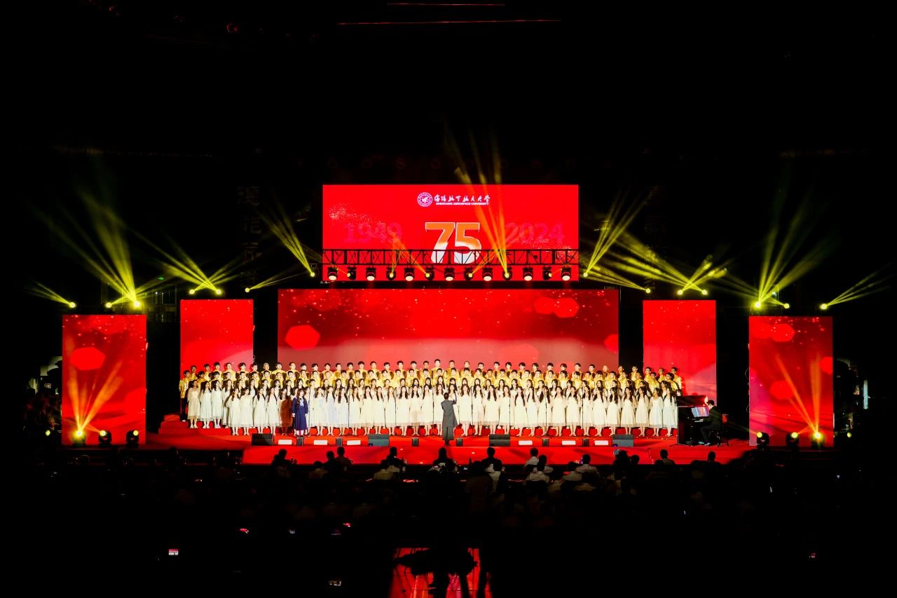 《歌唱祖国》的旋律响彻云霄,全体师生的心紧紧相连。歌声中,有对过去的怀念,对现在的珍惜,对未来的期待。在歌声中,我们共庆祖国七十五周年华诞,共绘沈航的明天,向着梦想的彼岸,扬帆起航!