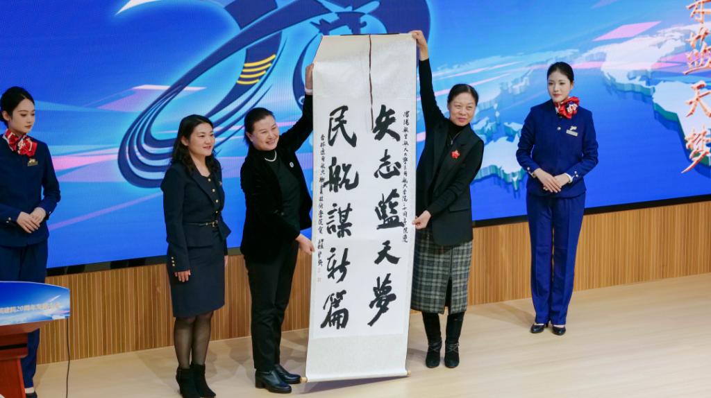 党委常委、纪委书记孟宪梅、民航学院党委副书记杨鹤接受赠字