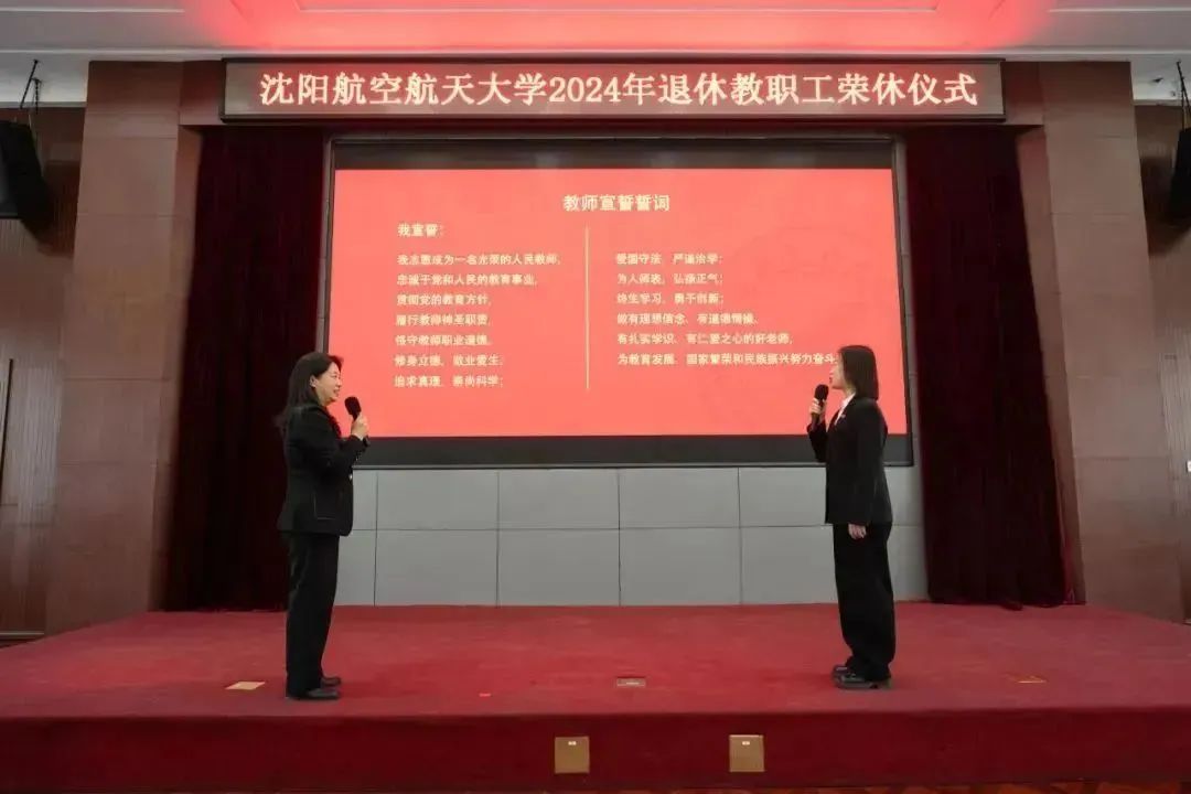 范振伟代表学校党委向荣休教职工们表达最崇高的敬意和由衷的礼赞。他表示,退休教职工在过去的岁月里,为学校的发展付出了辛勤努力,奉献了宝贵的青春年华,为沈航发展做出了重要贡献。同时,希望大家尽快完成角色转换,在享受退休生活、幸福晚年、哺育好第三代的同时,以沈航老同志的身份再次投入到沈航的发展建设中,继续为学校发展献计献策,贡献力量。
